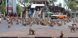 Centenas de macacos procuram comida na Tailândia. “Em razão do coronavírus, não há turistas para alimentá-los”, afirmam populares