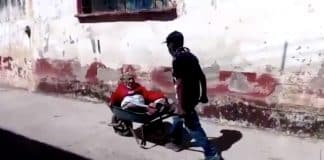 Filho leva sua mãe de 100 anos em um carrinho de mão para vaciná-la