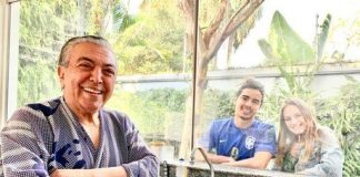 Maurício de Souza, pai da Turma da Mônica, recebe visita de filho pela janela (quarentena)