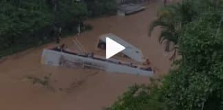 Desespero: vídeo mostra pessoas tentando sair de ônibus arrastados em Petrópolis