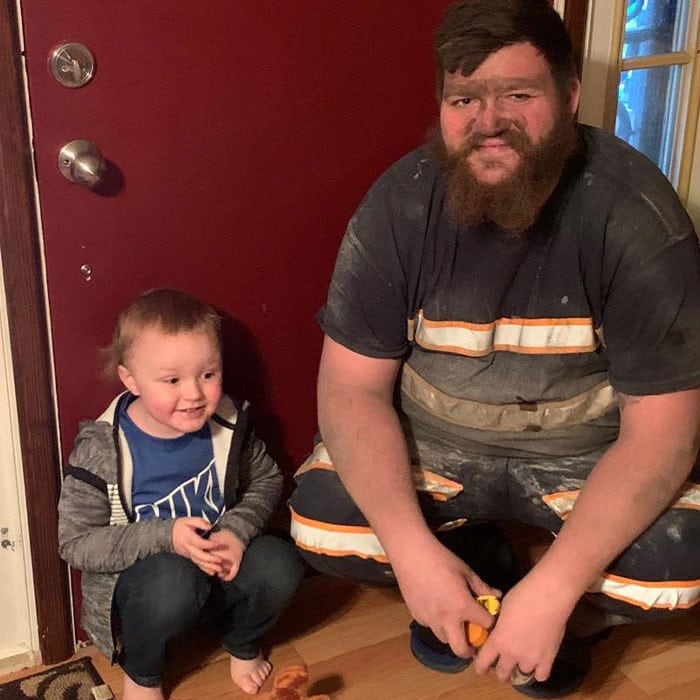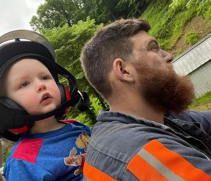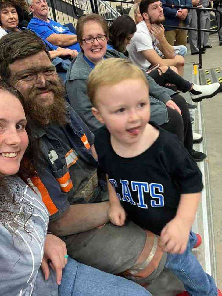 Ele estava coberto de sujeira do trabalho, não tendo tido tempo de tomar banho depois do turno, mas tinha algo importante para fazer: assistir a um jogo de basquete com o filho de 3 anos.