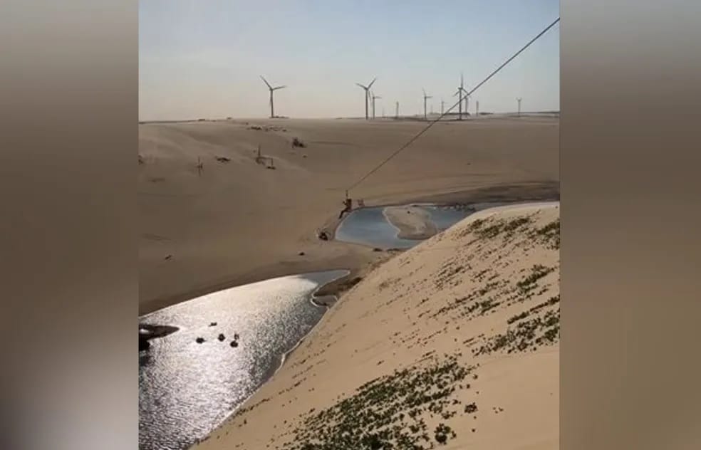 No vídeo liberado à imprensa na última terça-feira (25), Sergio é visto empolgado, descendo na tirolesa montada entre dunas do litoral cearense.