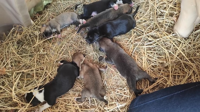 Após uma inspeção mais detalhada, Guzmán percebeu que a cadela havia dado à luz recentemente uma ninhada de filhotes minúsculos.