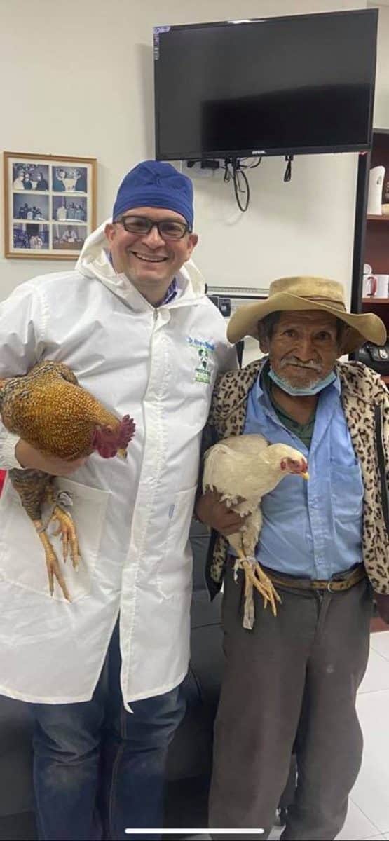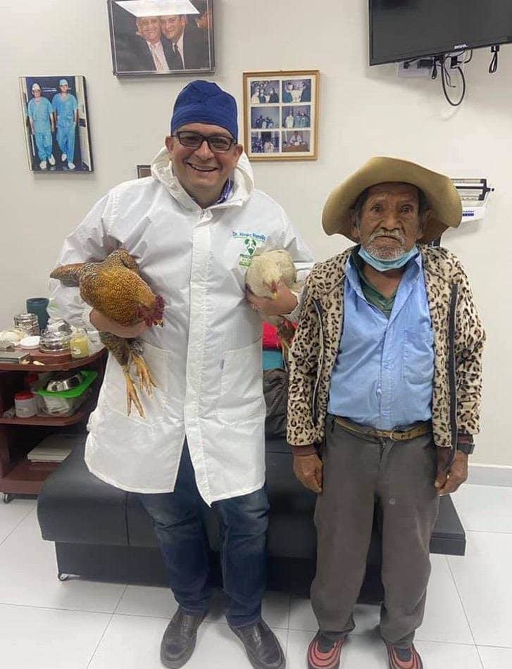 “Muito animado e feliz. Este avô não tinha dinheiro para fazer uma cirurgia de próstata, ao que respondi que íamos operá-lo para a Fundação Dr. José Ramallo Guillén, mas tal foi o meu espanto quando ele tirou duas galinhas de presente para me retribuir . Isso me emocionou e me comoveu muito ”. Dr. Álvaro Ramallo no Facebook –