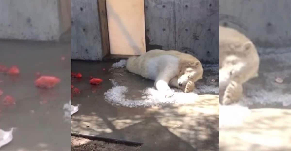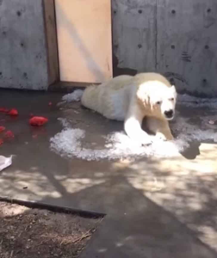 Hoje deparei-me com o vídeo no qual um urso polar, deitado no chão de um zoológico (Utah, Estados Unidos) reúne seguidas vezes o gelo que rapidamente derretia… Sua tristeza, não sei se reflexo da minha, pareceu-me clara e quase humana.