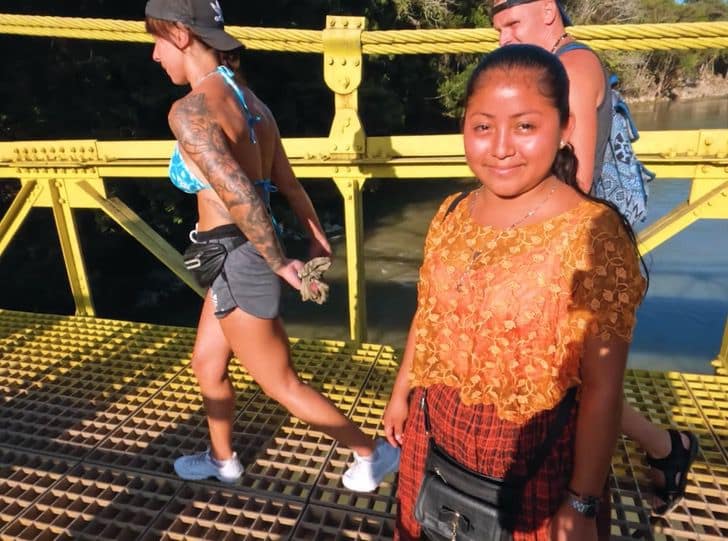 A menina trabalha na cidade de Semuc Champey , parque nacional deste país conhecido por seus diversos atrativos para caminhadas , conhecer rios , cachoeiras e para se conectar com a natureza em geral. Encontra-se especificamente na ponte amarela, sobre o rio Cahabón.