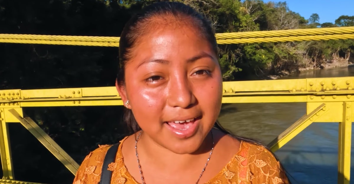 A menina trabalha na cidade de Semuc Champey , parque nacional deste país conhecido por seus diversos atrativos para caminhadas , conhecer rios , cachoeiras e para se conectar com a natureza em geral. Encontra-se especificamente na ponte amarela, sobre o rio Cahabón.