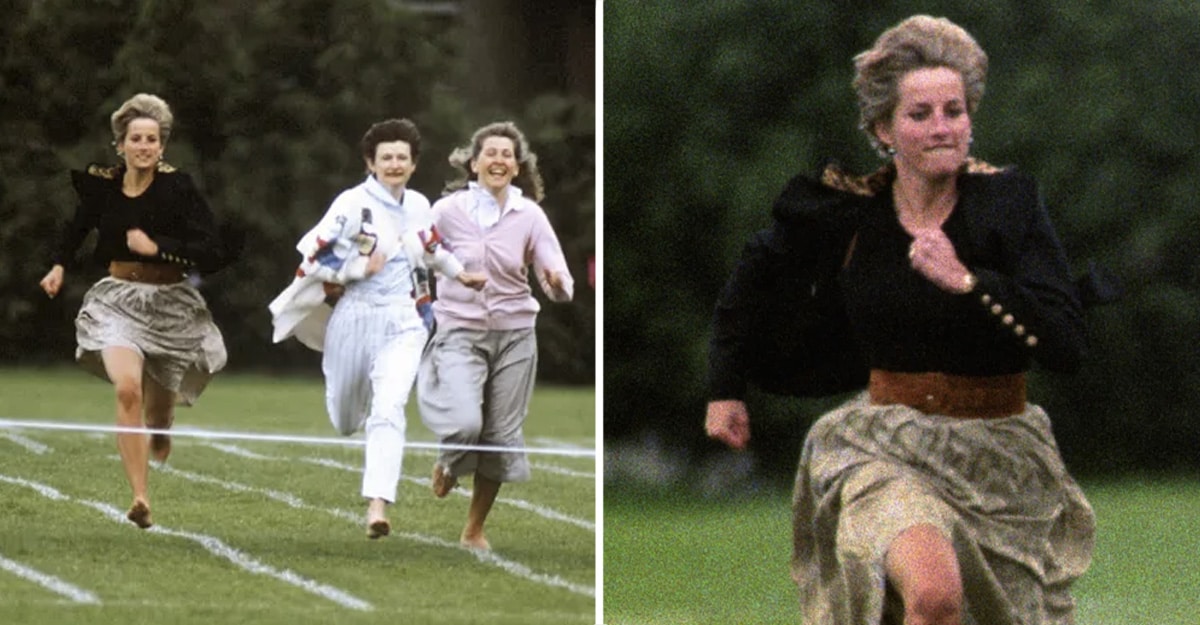 As imagens, compartilhadas pelo usuário @OregonProgress no Twitter, mostram Diana competindo nas clássicas “Olimpíadas” de pais que fizeram na Wetherby School, instituição onde seus filhos William e Harry estudaram.
