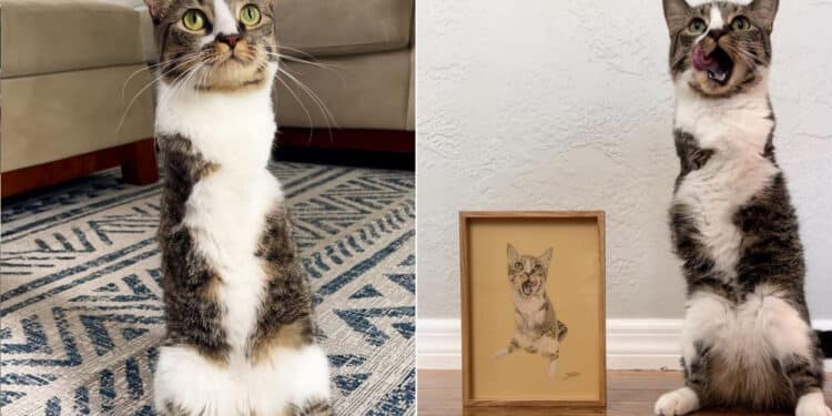 O felino só tem as pernas traseiras e anda como se fosse uma pessoa. Um vídeo do pet brincando viralizou no Twitter e o gato divertiu os internautas por lembrar,segundo os comentários, “um dinossauro”.