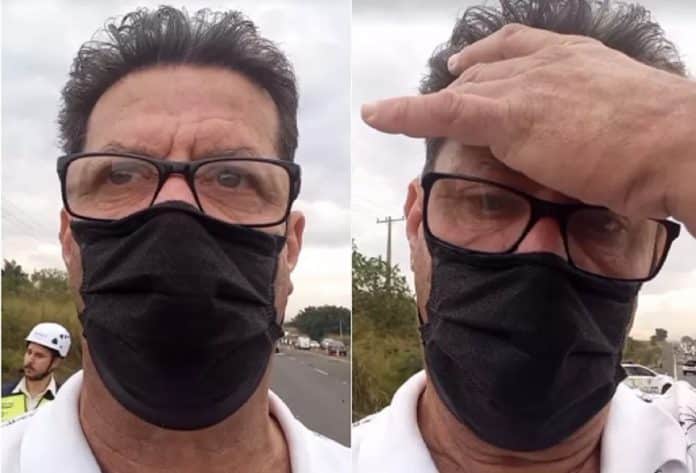 Nas imagens, o jornalista descreve imagens do acidente e se impressiona com a gravidade. “Minha Nossa Senhora da Aparecida, que acidente feio”, diz.