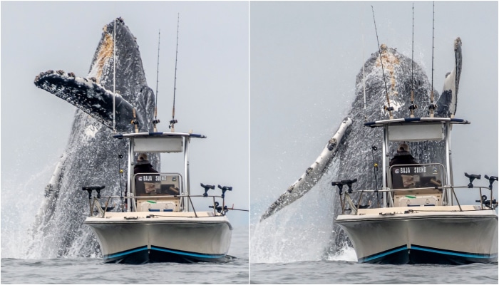 A incrível filmagem e vídeo (que podem ser vistos abaixo) mostram a baleia pulando nas ondas do oceano perto de um barco de pesca desavisado. “A baleia é enorme! Se eu fosse o pescador, provavelmente precisaria de roupas íntimas novas ”, disse o fotógrafo que capturou o momento incrível.