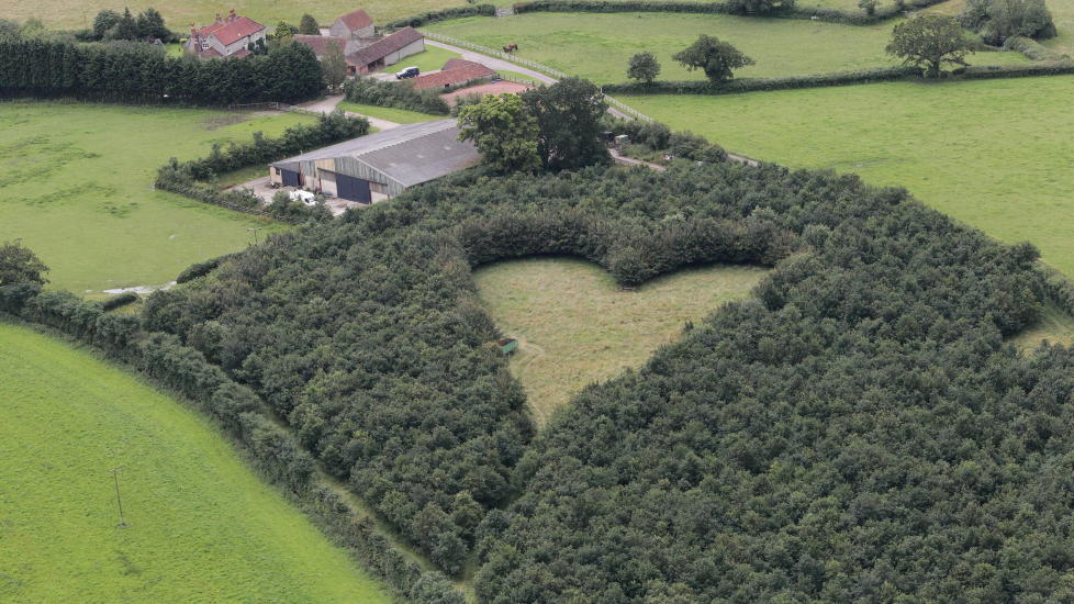 “Achei que era uma ótima idéia, foi um lampejo de inspiração e plantei vários milhares de carvalhos. Quando terminamos, sentamos no campo, olhando a colina perto de onde eu morava. Plantamos grandes carvalhos ao redor da borda do coração e decidimos colocar uma cerca viva também. O coração aponta para Wotton Hill, de onde Janet é. Nós plantamos narcisos no meio que aparecem na primavera: está lindo.”