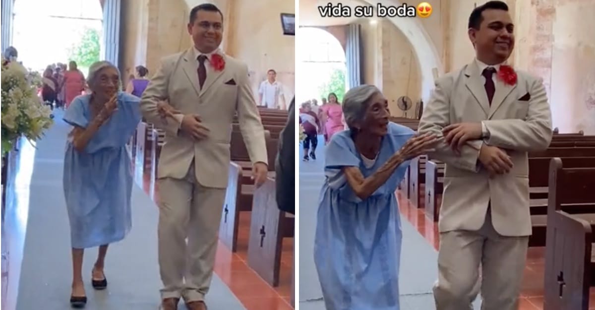 Em um vídeo adorável que viralizou nas redes sociais, uma vovó é vista acompanhando o neto ao altar, em uma belíssima cerimônia de casamento realizada no início deste mês.
