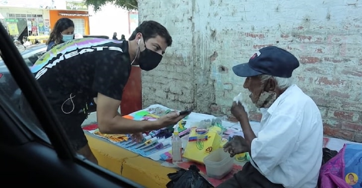 Luis Alberto Ríos Ortiz, de 93 anos logo recebeu uma bela visita: um jovem youtuber veio visitá-lo e comprou todos os seus produtos.